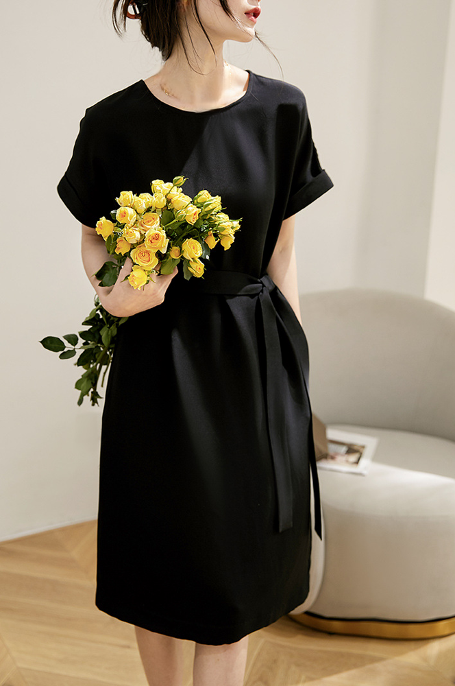 여름 헤비 모조 실크 스트레이트 타이 드레스